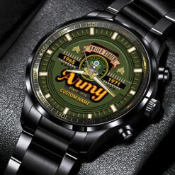 Elevate your Black Stainless Steel Watch with a personal touch by incorporating your custom details like name, rank, and years of service. This unique addition commemorates your military experience in a stylish and meaningful way.
