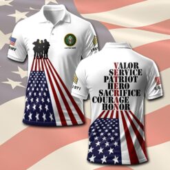 Pay tribute to our veterans’ courage with our printed classic T-shirt. Its design is a powerful reminder of the selflessness and dedication they’ve shown in defending our freedoms.