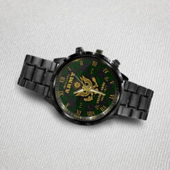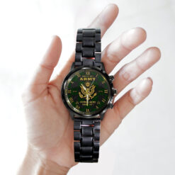 Express your unwavering support and admiration for a service member or veteran in your life with our Black Stainless Steel Watch. Whether presented on Veterans Day, retirement, or any occasion honoring military service, this watch stands as a testament to their unwavering dedication and is sure to be treasured for years to come.