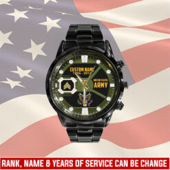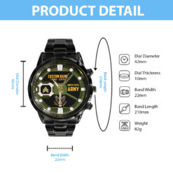 Make your Black Stainless Steel Watch a reflection of your personal journey by including custom details like your name, rank, and years of service. This personalized feature not only adds a touch of elegance but also serves as a timeless tribute to your dedicated service to our country.