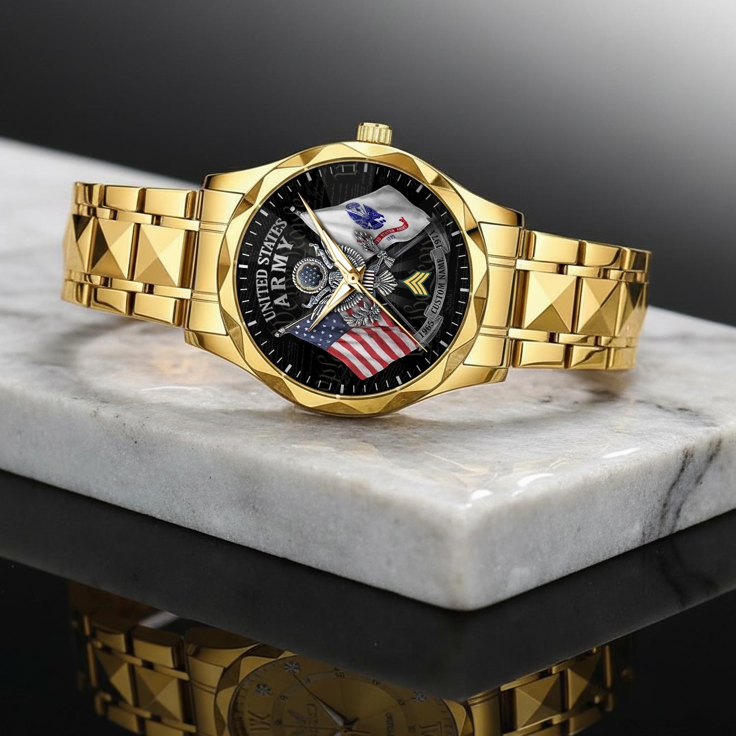 US Army, E 6 Army Staff Sergeant – Diamond-Cut Bezel Watch