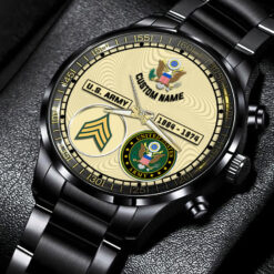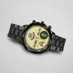 Elevate your Black Stainless Steel Watch with a personal touch by incorporating your custom details like name, rank, and years of service. This unique addition commemorates your military experience in a stylish and meaningful way.