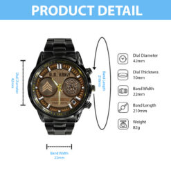 Make your Black Stainless Steel Watch uniquely yours by adding your custom information such as name, rank, and years of service. This personalized detail adds a special touch, celebrating your military journey with elegance and grace.