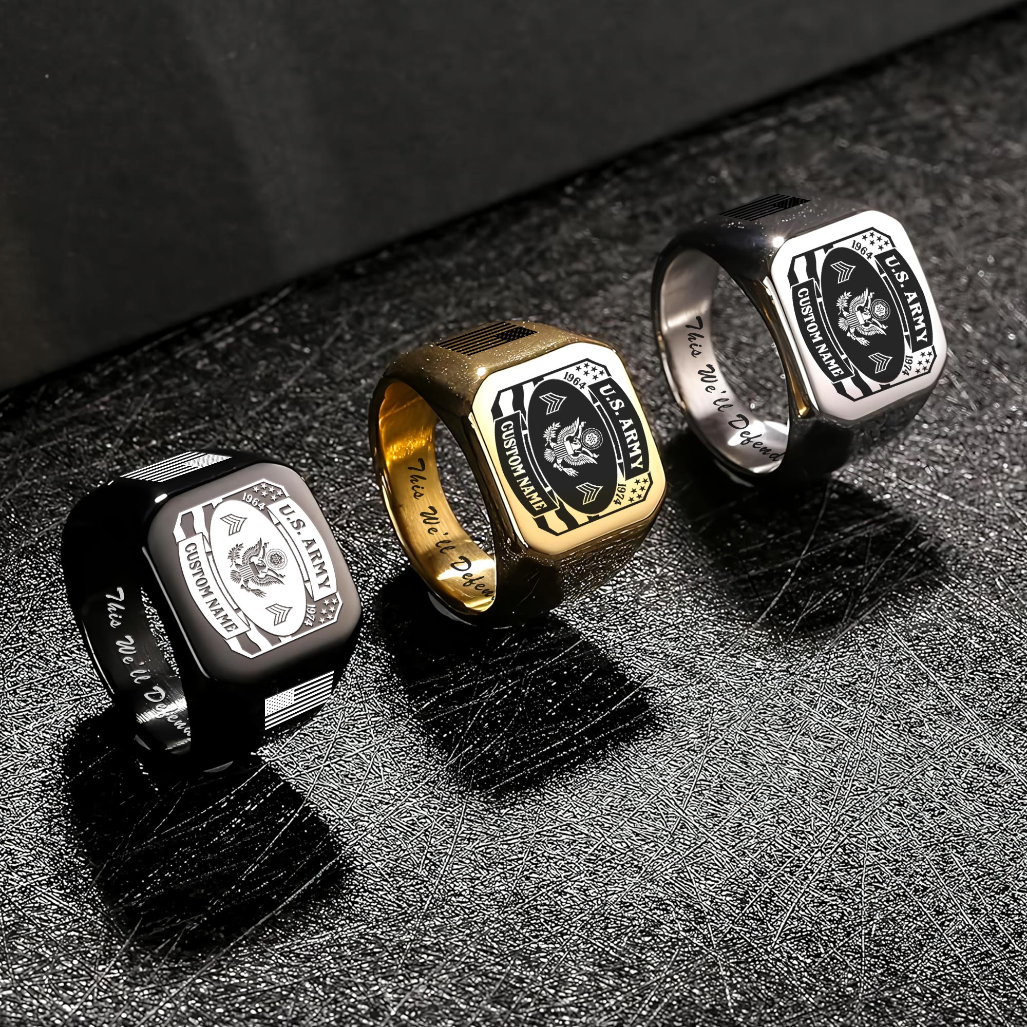 Offered in three stunning finishes – Silver, Gold, and Black – this ring caters to every personal style preference. More than just jewelry, these rings serve as a meaningful tribute to military service, symbolizing dedication and valor.