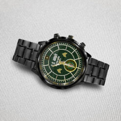 Elevate your Black Stainless Steel Watch with a personal touch by incorporating your custom details like name, rank, and years of service. This unique addition commemorates your military experience in a stylish and meaningful way.