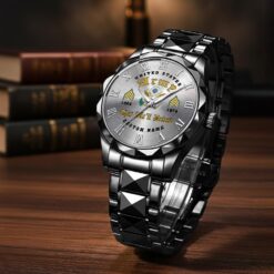 Make your Diamond-Cut Bezel Watch a reflection of your personal journey by including custom details like your name, rank, and years of service. This personalized feature not only adds a touch of elegance but also serves as a timeless tribute to your dedicated service to our country.