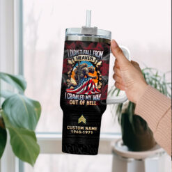 Honor the veteran in your life with our personalized tumbler options, allowing you to customize with their rank, name, and other personal details for a heartfelt touch.