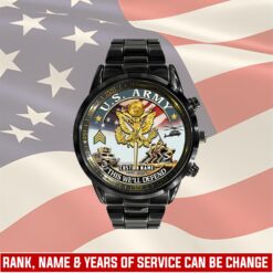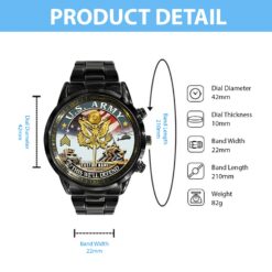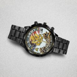 Customize your Black Stainless Steel Watch with your name, rank, and years of service for a truly one-of-a-kind timepiece. This personalized feature allows you to showcase your military journey with pride and distinction.