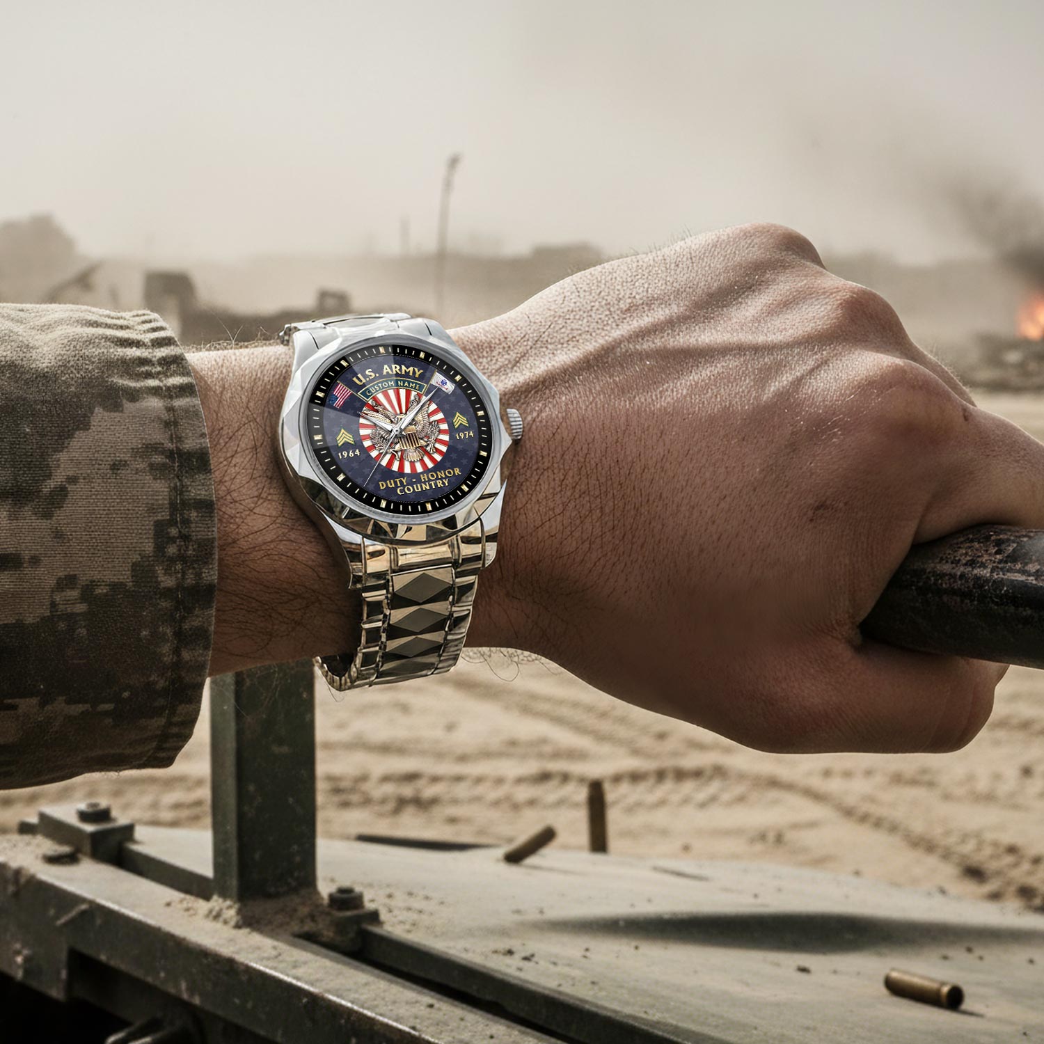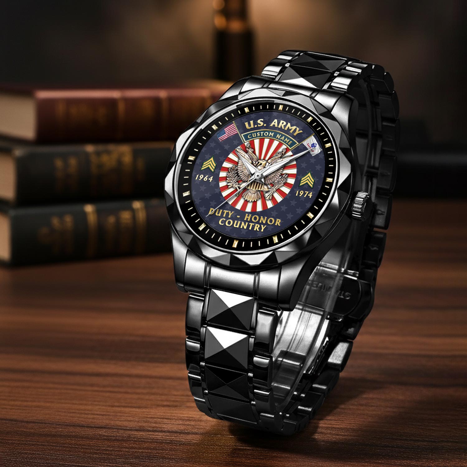 Express your unwavering support and admiration for a service member or veteran in your life with our Diamond-Cut Bezel Watch. Whether presented on Veterans Day, retirement, or any occasion honoring military service, this watch stands as a testament to their unwavering dedication and is sure to be treasured for years to come.