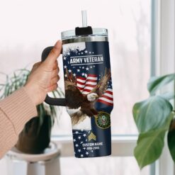 Add a special touch to your tumbler with our personalized options, perfect for commemorating the service of veterans with custom ranks, names, and more.