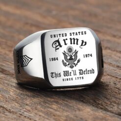 You’re enabled to customize your name, rank, rating, etc. to have them printed on the personalized engraved men’s ring. Transform this piece into a personal memorial of your service and accomplishments.