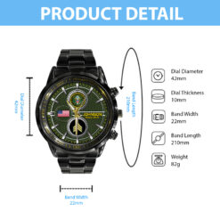 Express your unwavering support and admiration for a service member or veteran in your life with our Black Stainless Steel Watch. Whether presented on Veterans Day, retirement, or any occasion honoring military service, this watch stands as a testament to their unwavering dedication and is sure to be treasured for years to come.