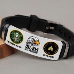 Incorporating an adaptive strap mechanism, the bracelet transcends traditional sizing limitations. It emerges as a profound tribute to veterans, symbolizing dedication, service, and the enduring spirit of patriotism.