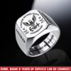 You’re enabled to customize your name, rank, rating, etc. to have them printed on the personalized engraved men’s ring. Make it uniquely yours by incorporating elements that celebrate your military identity and legacy.