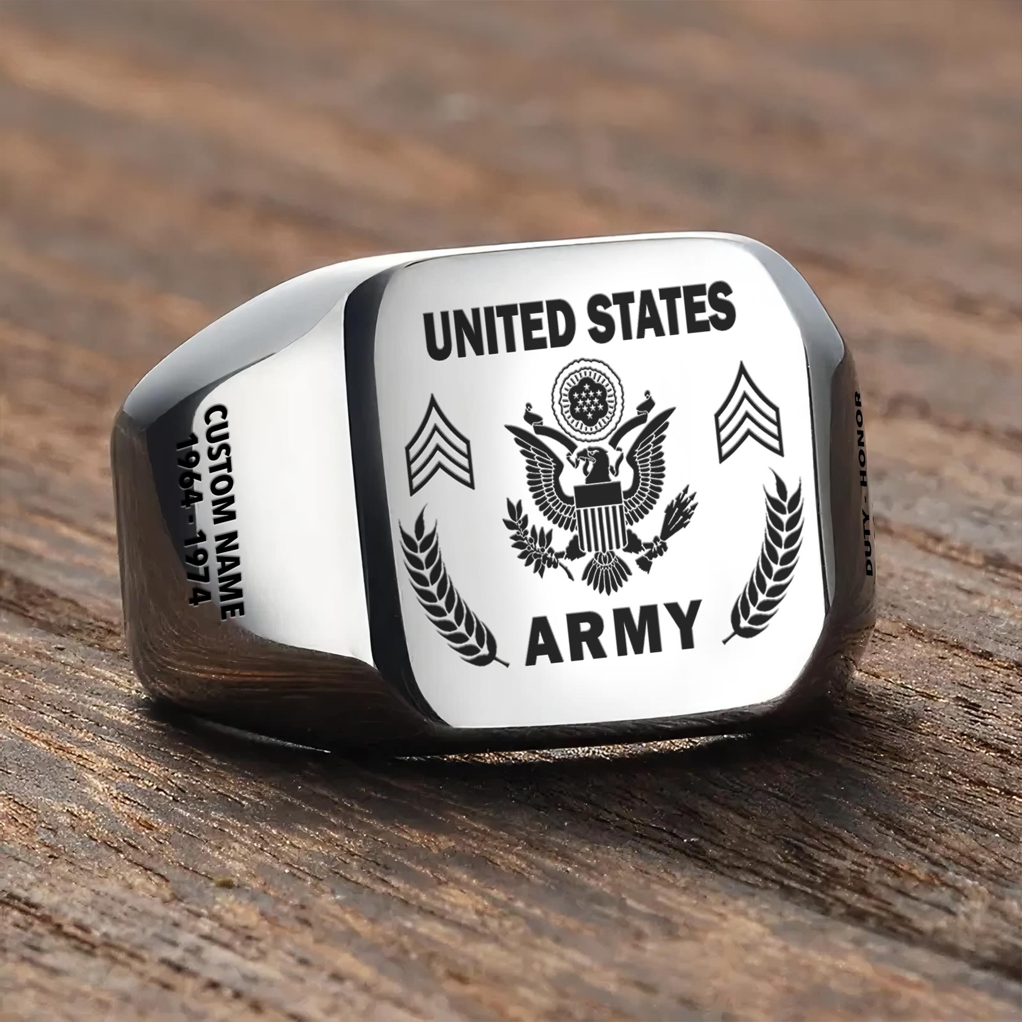 US Army, Honor, Duty, Service – Engraved Men’s Ring