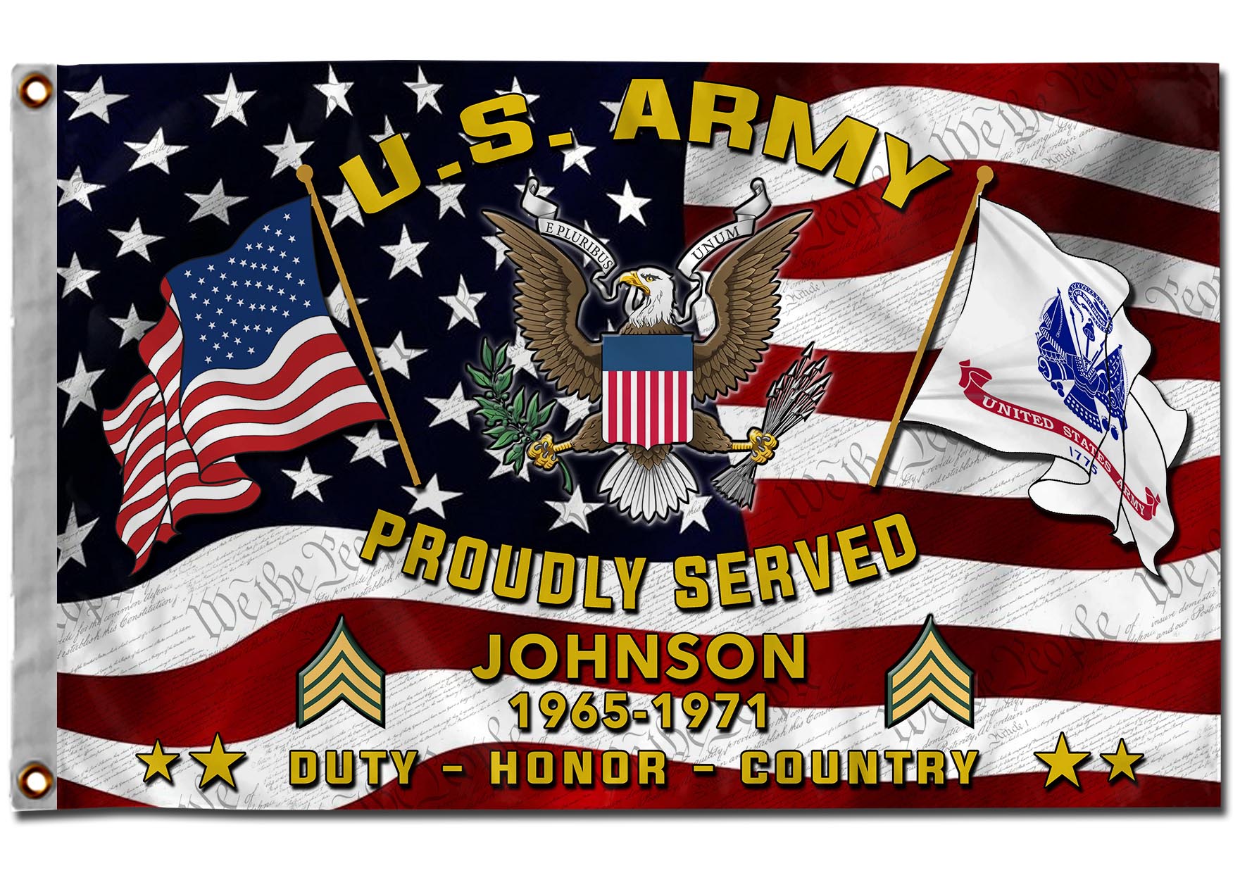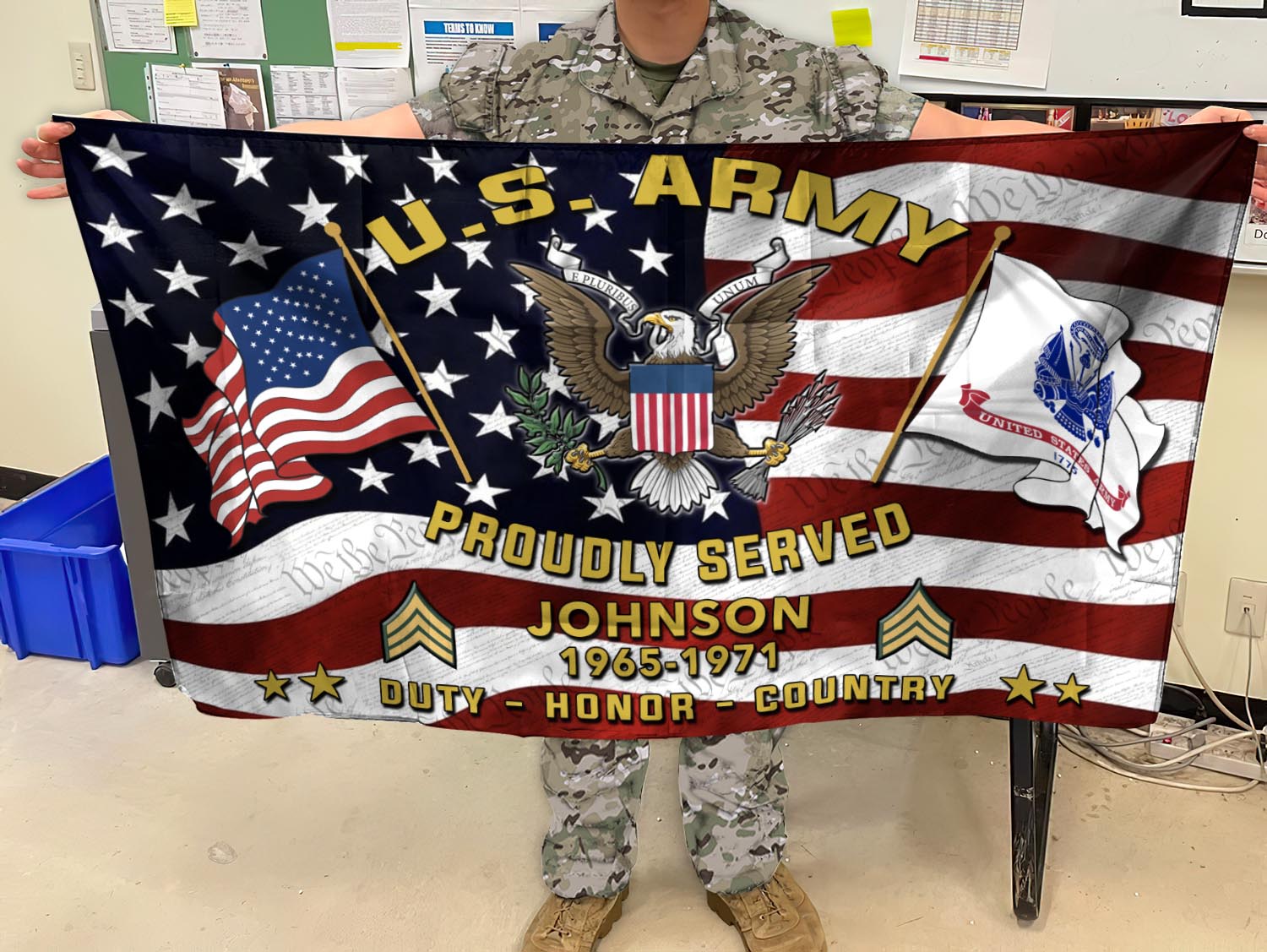 Make every Veterans Day, Memorial Day, or military homecoming special with our personalized flags. These flags are a heartfelt tribute to the brave men and women who have served our country, making them perfect for honoring their sacrifice at any event or gathering.