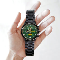 Express your unwavering support and admiration for a service member or veteran in your life with our Black Stainless Steel Watch. Whether presented on Veterans Day, retirement, or any occasion honoring military service, this watch stands as a testament to their unwavering dedication and is sure to be treasured for years to come.