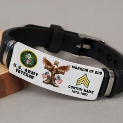 Incorporating an adaptive strap mechanism, the bracelet transcends traditional sizing limitations. It emerges as a profound tribute to veterans, symbolizing dedication, service, and the enduring spirit of patriotism.