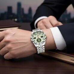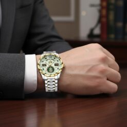 Built for practical veterans and active individuals, this watch features water-resistant capabilities suitable for routine hand-washing and face washing scenarios. The innovative scratch-resistant and anti-fog mirror ensures unobstructed time viewing in various conditions, combining protective durability with functional clarity for a timepiece that performs as impressively as it looks.