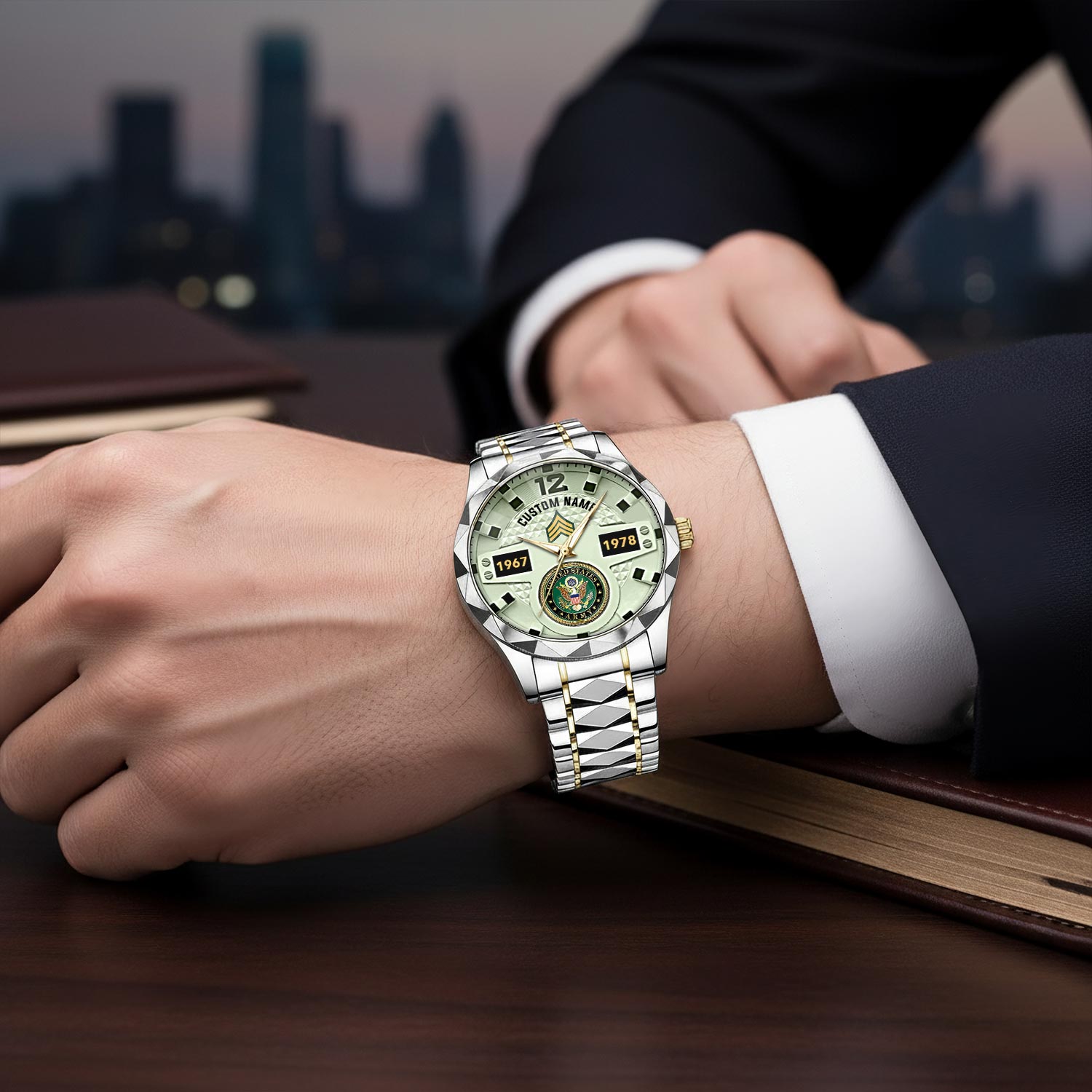 Make your Diamond-Cut Bezel Watch uniquely yours by adding your custom information such as name, rank, and years of service. This personalized detail adds a special touch, celebrating your military journey with elegance and grace.