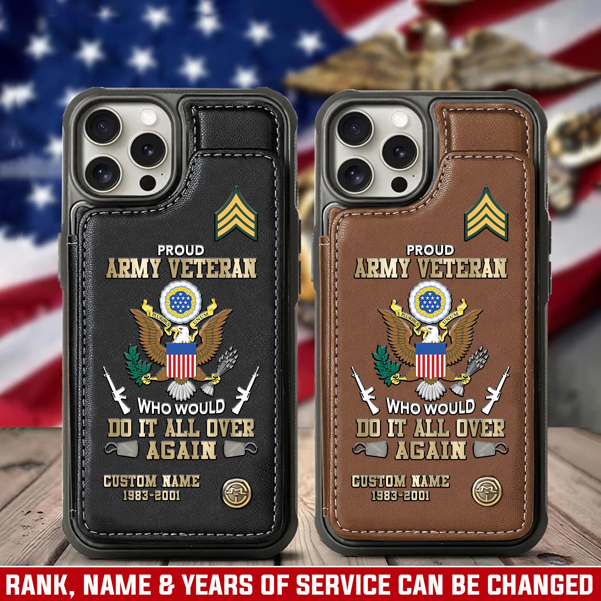 US Army, Honoring All Who Served – Leather Flip Phone Case