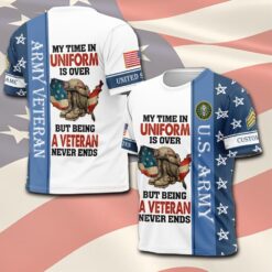 Celebrate the valor of our veterans with our printed classic T-shirt. This timeless garment serves as more than just clothing—it’s a symbol of appreciation and recognition for their sacrifices. Whether it’s a birthday, Veterans Day, or any occasion, wearing this T-shirt is a meaningful way to express your respect and gratitude for their service to our country.