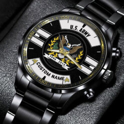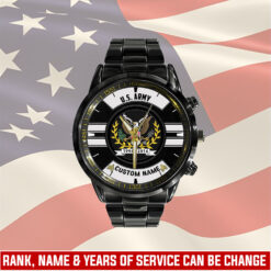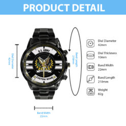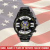 Make your Black Stainless Steel Watch uniquely yours by adding your custom information such as name, rank, and years of service. This personalized detail adds a special touch, celebrating your military journey with elegance and grace.