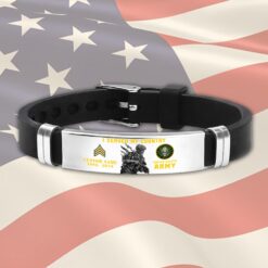 Incorporating an adaptive strap mechanism, the bracelet transcends traditional sizing limitations. It emerges as a profound tribute to veterans, symbolizing dedication, service, and the enduring spirit of patriotism.