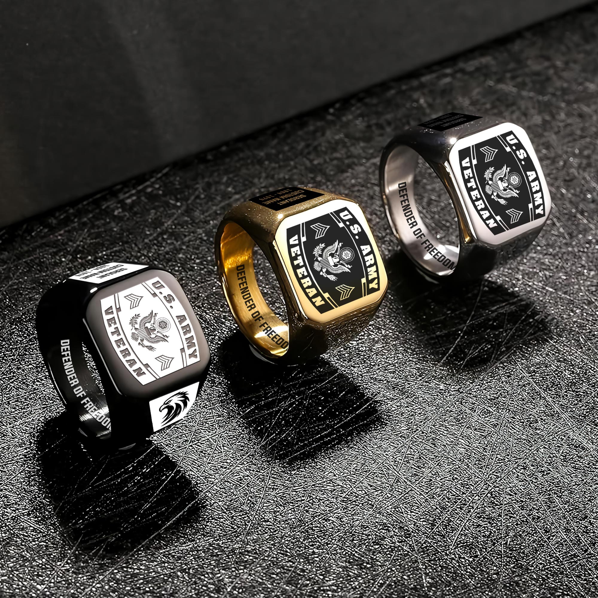 Presented in three elegant finishes – Silver, Gold, and Black – each offering distinct character and appeal. Beyond simple ornamentation, these rings honor military tradition, representing courage and commitment to service.