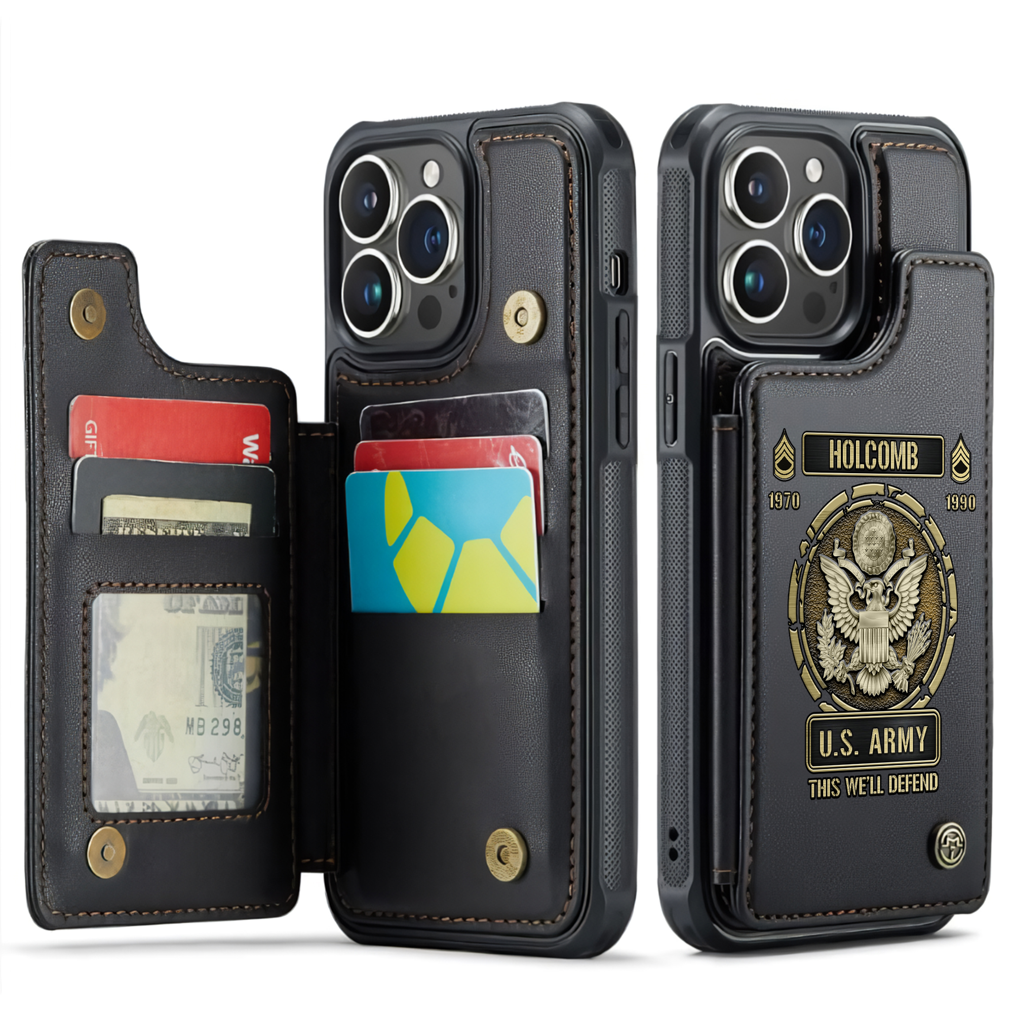 Pay tribute to military service with our exceptional Veteran Leather Flip Wallet Phone Case, precisely engineered from durable PU leather to ensure reliable protection and sophisticated aesthetics. This commemorative accessory brilliantly merges military honor with practical innovation, offering veterans, service members, and military supporters a respectful method to display their commitment while securing their essential technology.