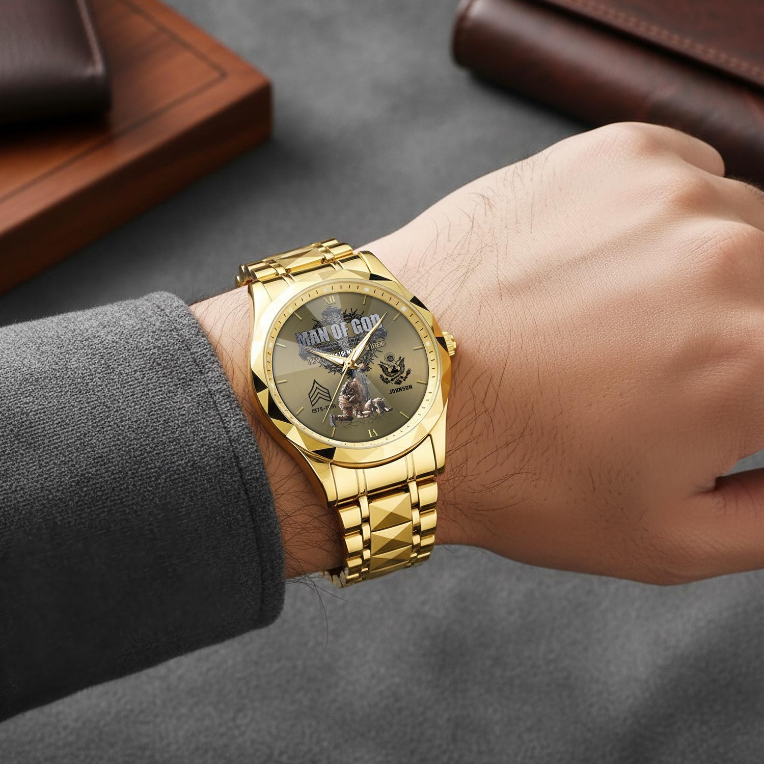 Make your Diamond-Cut Bezel Watch a reflection of your personal journey by including custom details like your name, rank, and years of service. This personalized feature not only adds a touch of elegance but also serves as a timeless tribute to your dedicated service to our country.