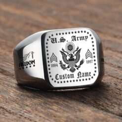 You’re enabled to customize your name, rank, rating, etc. to have them printed on the personalized engraved men’s ring. Make it uniquely yours by incorporating elements that celebrate your military identity and legacy.