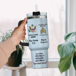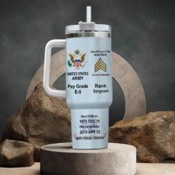 Add a special touch to your tumbler with our personalized options, perfect for commemorating the service of veterans with custom ranks, names, and more.