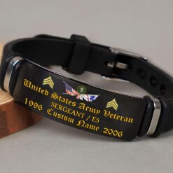 Incorporating an adaptive strap mechanism, the bracelet transcends traditional sizing limitations. It emerges as a profound tribute to veterans, symbolizing dedication, service, and the enduring spirit of patriotism.