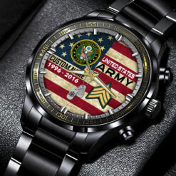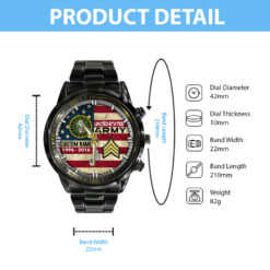 Elevate your Black Stainless Steel Watch with a personal touch by incorporating your custom details like name, rank, and years of service. This unique addition commemorates your military experience in a stylish and meaningful way.