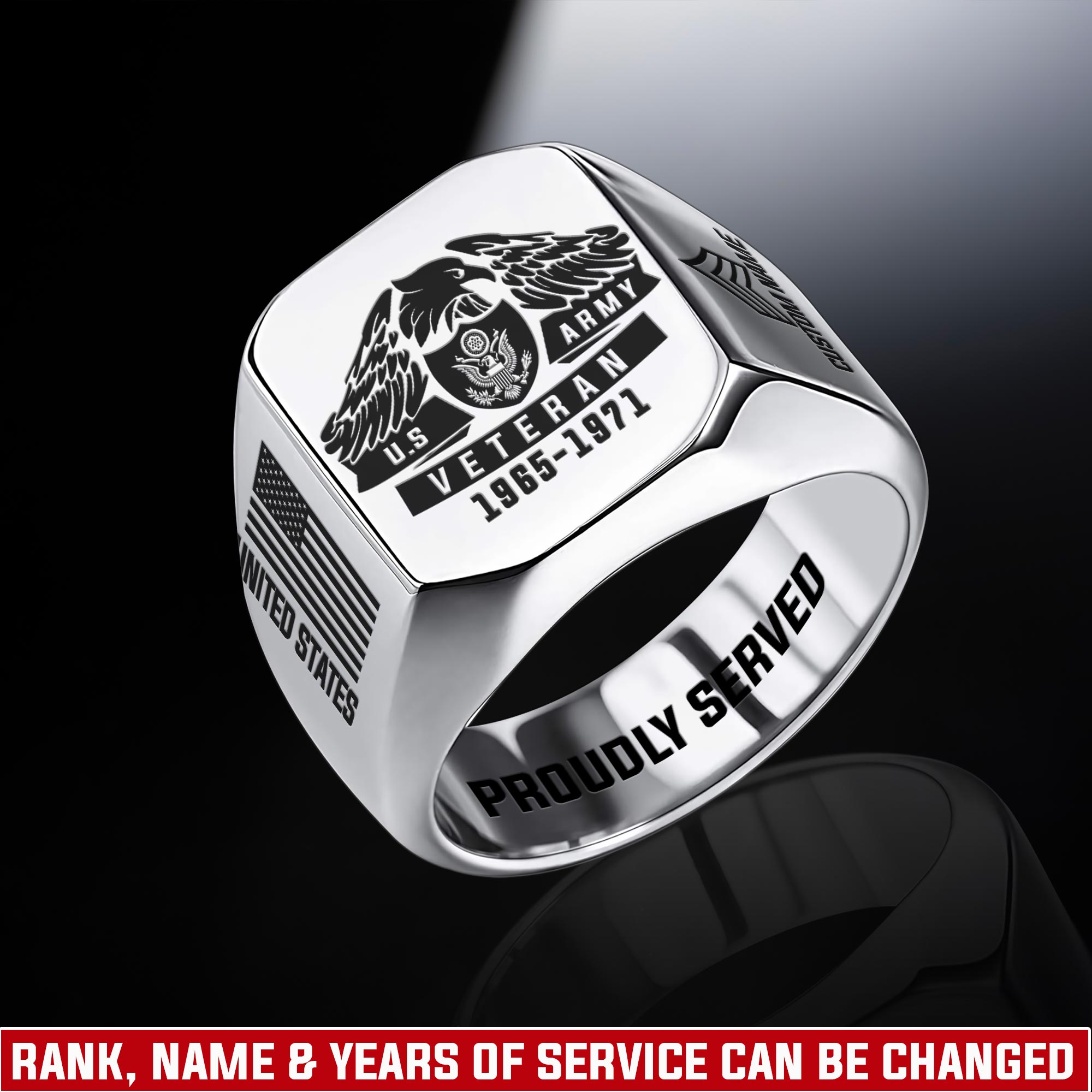 You’re enabled to customize your name, rank, rating, etc. to have them printed on the personalized engraved men’s ring. Personalize this meaningful piece to showcase your military credentials and cherished memories.
