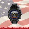 Personalize your Black Stainless Steel Watch with custom engravings of your name, rank, and years of service. This thoughtful addition transforms your watch into a cherished memento, honoring your dedication and commitment to service.