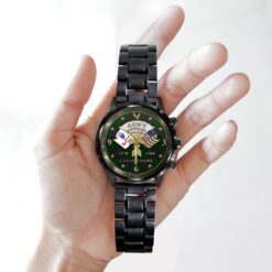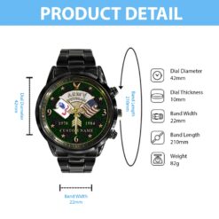 Elevate your Black Stainless Steel Watch with a personal touch by incorporating your custom details like name, rank, and years of service. This unique addition commemorates your military experience in a stylish and meaningful way.