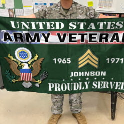Make every Veterans Day, Memorial Day, or military homecoming special with our personalized flags. These flags are a heartfelt tribute to the brave men and women who have served our country, making them perfect for honoring their sacrifice at any event or gathering.
