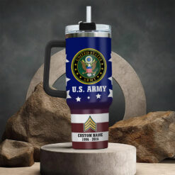 Make a statement with our personalized tumbler selections, designed to honor veterans with custom ranks, names, and personalized details for a truly special touch.