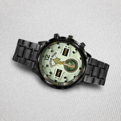 Make your Black Stainless Steel Watch a reflection of your personal journey by including custom details like your name, rank, and years of service. This personalized feature not only adds a touch of elegance but also serves as a timeless tribute to your dedicated service to our country.