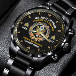Elevate your Black Stainless Steel Watch with a personal touch by incorporating your custom details like name, rank, and years of service. This unique addition commemorates your military experience in a stylish and meaningful way.