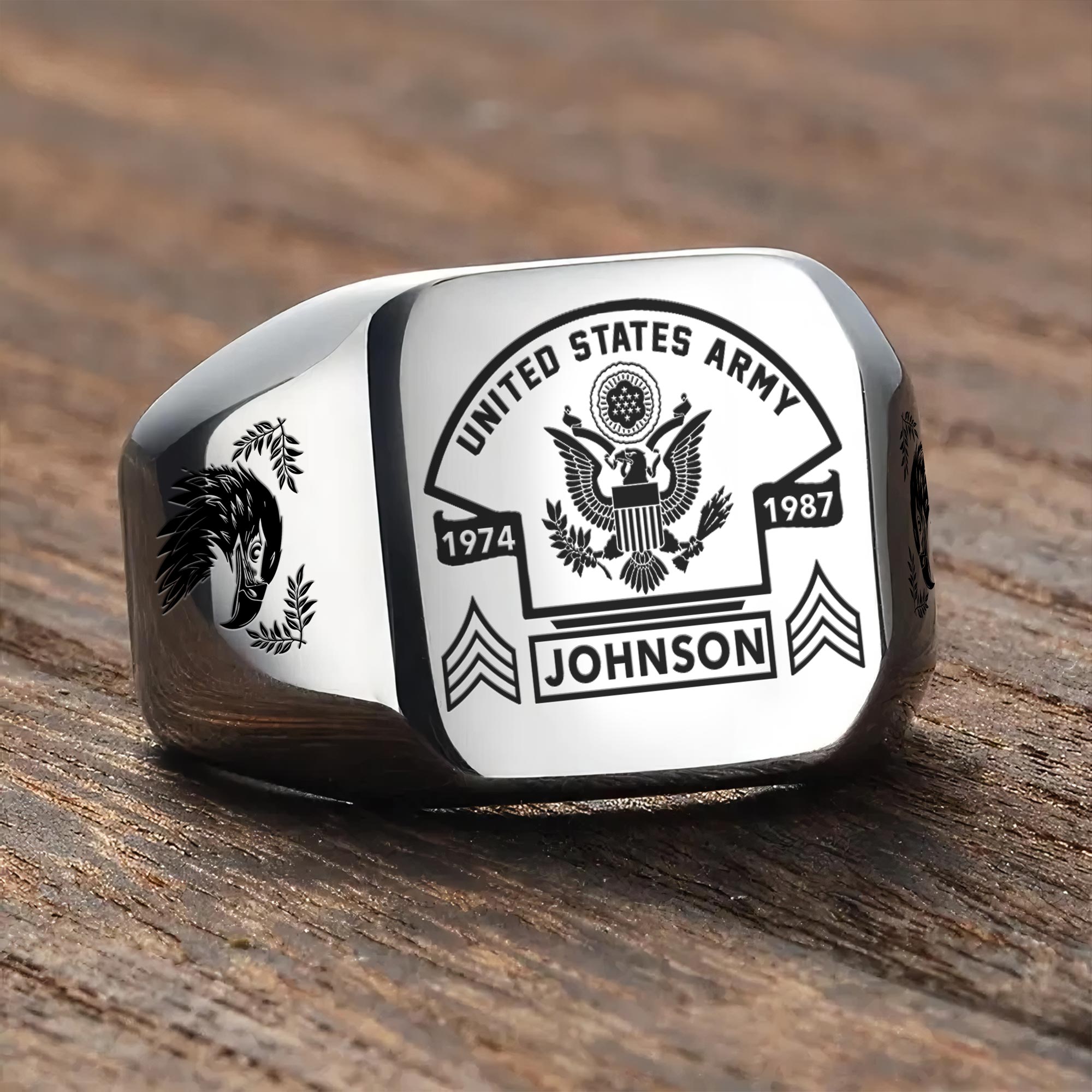 You’re enabled to customize your name, rank, rating, etc. to have them printed on the personalized engraved men’s ring. Create a unique piece that reflects your military journey and personal achievements.