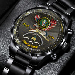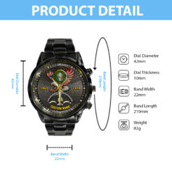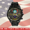 Personalize your Black Stainless Steel Watch with custom engravings of your name, rank, and years of service. This thoughtful addition transforms your watch into a cherished memento, honoring your dedication and commitment to service.