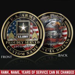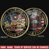 Honor Their Service: customize with veteran’s name, achieved rank, service branch, assigned unit, career specialty, or total years served on both coin faces.