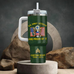 Add a special touch to your tumbler with our personalized options, perfect for commemorating the service of veterans with custom ranks, names, and more.