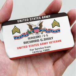 Customize your printed metal card with your name, rank, and years of service for a truly one-of-a-kind timepiece. This personalized feature allows you to showcase your military journey with pride and distinction.