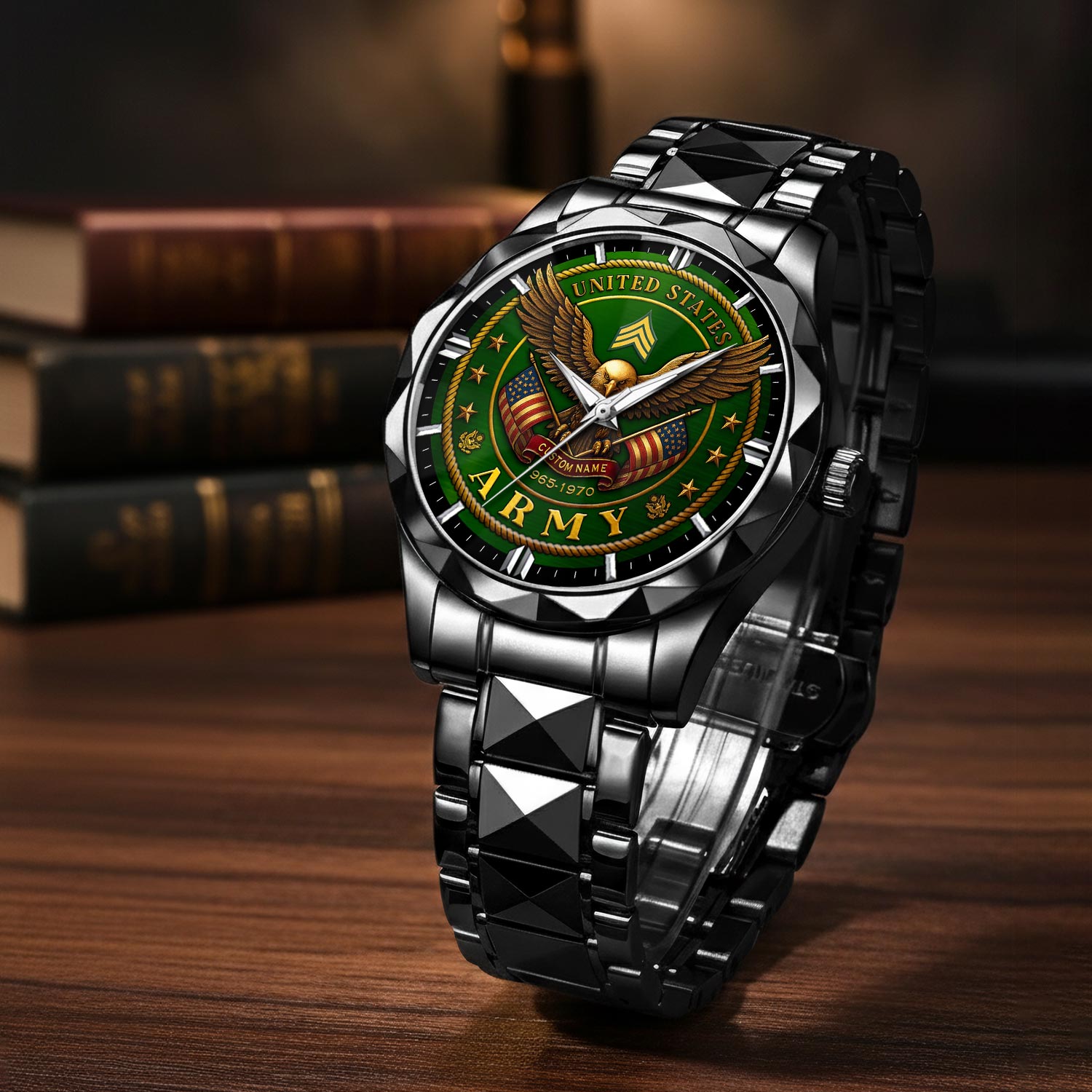 US Army, Proud To Have Served – Diamond-Cut Bezel Watch
