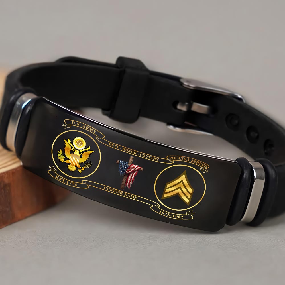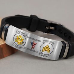 Incorporating an adaptive strap mechanism, the bracelet transcends traditional sizing limitations. It emerges as a profound tribute to veterans, symbolizing dedication, service, and the enduring spirit of patriotism.