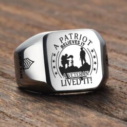You’re enabled to customize your name, rank, rating, etc. to have them printed on the personalized engraved men’s ring. Make it uniquely yours by incorporating elements that celebrate your military identity and legacy.